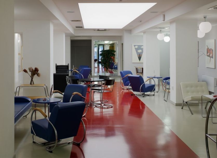 Re-opened in June 2014 after an extensive renovation, 3-star AXA Hotel was built in the early 1930s in a Functionalist style in a central Prague location 1,100 metres from Wenceslas Square. Free WiFi is available, and for surcharge, guests can use a swimming pool, sauna, fitness centre, and sun bed. The modern and bright rooms at Hotel AXA come with a flat-screen satellite TV, a seating area, and a bathroom. There is no air condition in the rooms. During summer months, fans are available upon request. Bílá Labuť Tram Stop is only steps away, the Florenc Bus Station is 300 metres away, and the Palladium Shopping Centre is 400 metres away. It is 450 metres to the Masarykovo Train Station and 1 km to Prague Main Train Station. Prague Airport is 11 km away, with transfers available at an additional cost. In 2014 the building was declared a cultural monument by the Czech Ministry of Culture.